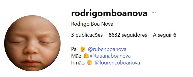 Rodrigo Boa Nova já conta com milhares de seguidores nas redes sociais. Até ao momento de publicação deste artigo, o bebé reunia 8 mil e 632 fãs.