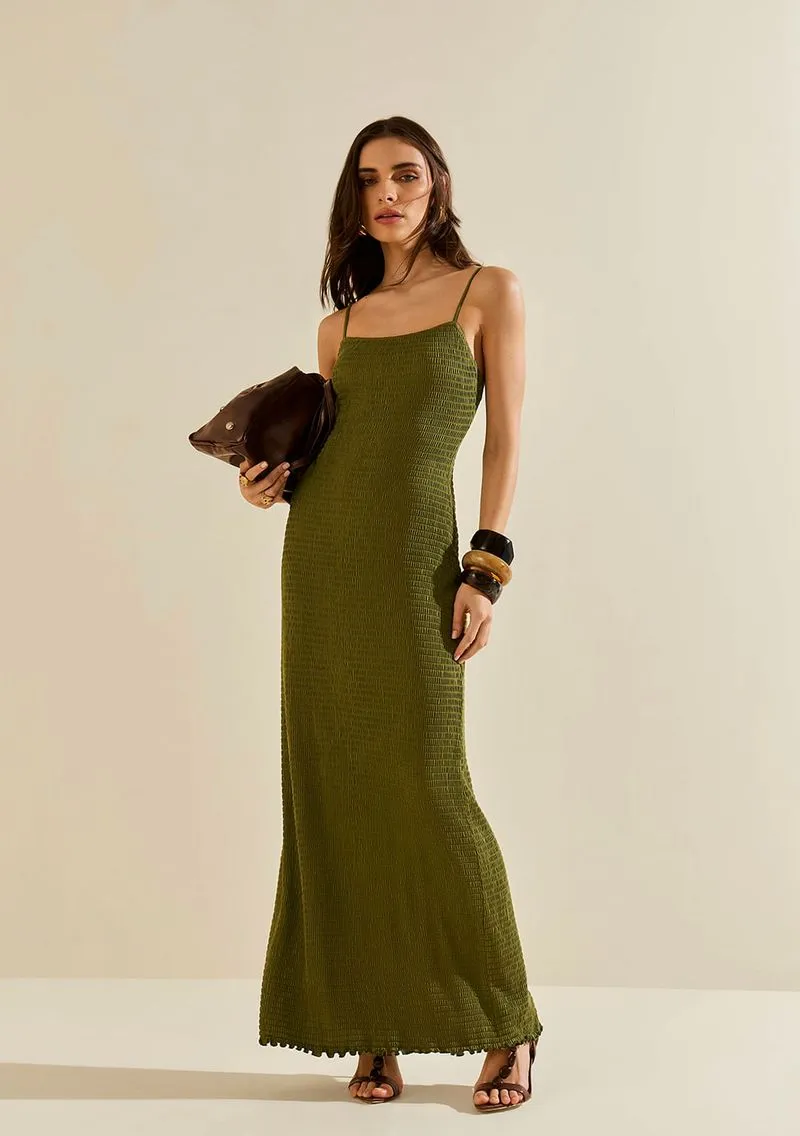 Vestido Ajustado Decote Careca Sem Manga Midi Verde da Morena Rosa (R$ 689,90)