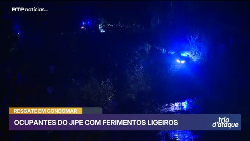 O alerta foi dado ao final da tarde. Já perto das 23h00 decorriam operações para retirar o jipe do rio.