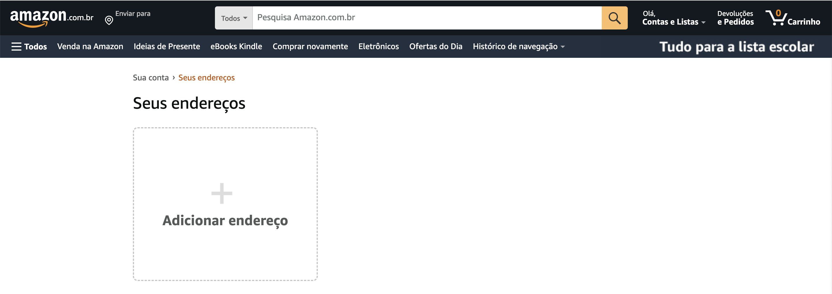 2. Depois disso, vá em endereços para adicionar um novo local de entrega