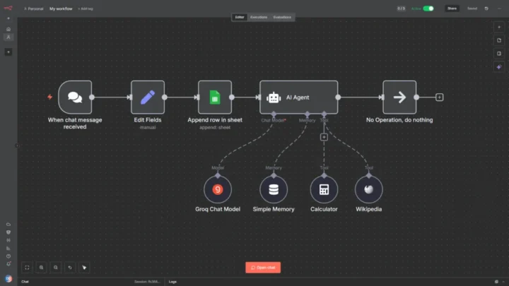 O utilizador constrói estes fluxos arrastando blocos no editor visual. Existem centenas de nodes disponíveis, incluindo integrações com serviços populares: