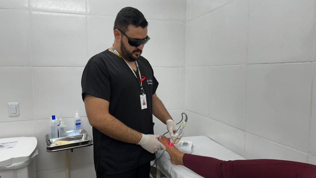 Conforme Phamela, a partir das capacitações, iniciadas no fim do mês passado, as equipes começaram a utilizar o tratamento à base de laser para tratamento dos usuários atendidos nas unidades de referência. “É feita uma avaliação inicial para verificar se o paciente é elegível para a terapia, a depender da condição da lesão, e a partir daí é iniciado todo o protocolo de atendimento”, explica.