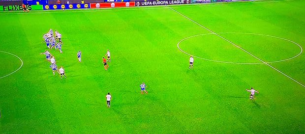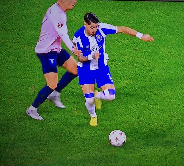 81′ Jens Stryger ao, com a mão direita, agarrar o ombro direito de Borja Sainz e com isso parar a transição ofensiva do avançado espanhol dos dragões, foi corretamente advertido. Boa decisão disciplinar.
