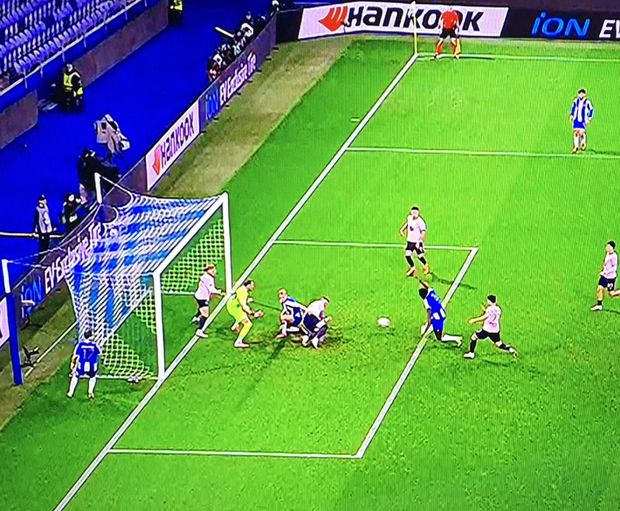 30′ No primeiro golo dos dragões, Samu, aquando do cabeceamento, não agarrou, empurrou, carregou ou impediu de saltar Gabriel Busanello, houve apenas um ligeiro e inconsequente toque com a mão direita no ombro esquerdo do seu adversário. Golo legal sem qualquer falta atacante.