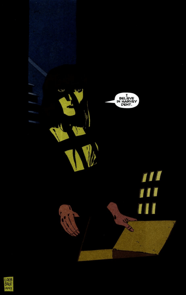 No clássico dos quadrinhos, Gilda era a inocente e sofrida esposa de Harvey Dent, até ser revelada como uma serial killer implacável que não levantou suspeita em ninguém. Ela foi uma das pessoas que agiu sob a identidade do assassino do Feriado.