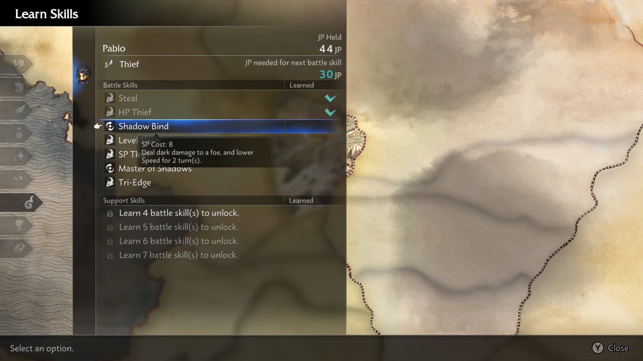 Outra grande mudança de jogos passados, e um resquício da natureza gacha de CotC, é que desta vez os personagens são bem menos customizáveis. Desta vez não temos personagens podendo aderir a duas classes simultaneamente, sendo designados apenas aos seus jobs iniciais e sua seleção de skills pré-determinadas.