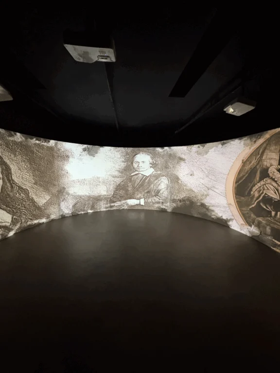 A expografia convida a presença do espectador, em geral, esse sujeito desatento que fotografa a obra antes de olhá-la. E para conduzir essa aproximação são criados espaços de pausa, vídeos informativos sobre a coleção italiana, acessibilidade para os trabalhos e, ao final, uma grande tela que dá movimento ao artista, em efeitos criados por inteligência artificial.