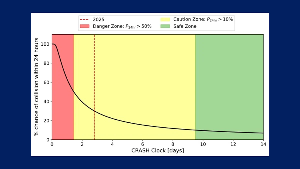A equipa de investigação criou um website para atualizar o CRASH Clock periodicamente, promovendo a “consciência situacional”. Segundo Lawler, uma grande colisão a curto prazo não significaria necessariamente o fim das operações espaciais, mas assemelhar-se-ia a um desastre ambiental como o do Exxon Valdez: as operações continuariam, mas num ambiente muito mais perigoso, sujo e dispendioso.