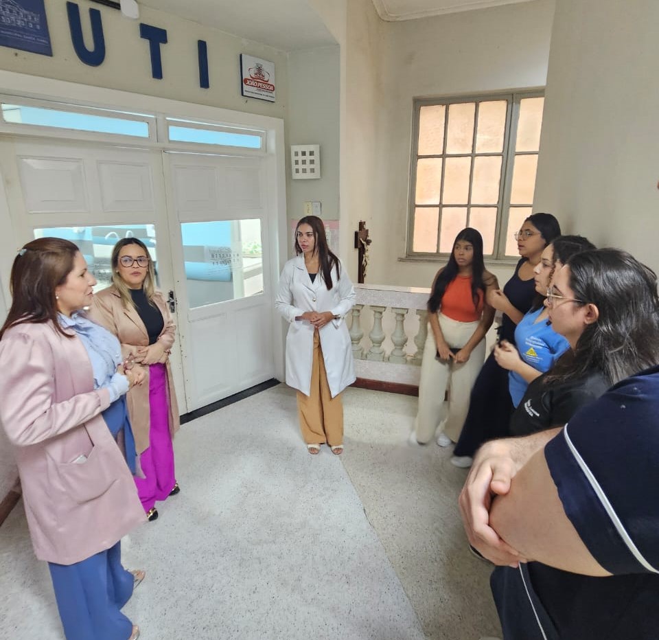 Os residentes foram recebidos pelas coordenadoras do Núcleo de Segurança do Paciente, nutricionista Danielly de Moraes Chiappetta; do Centro de Estudos do HMSI, nutricionista Paloma Egídio; pela nutricionista Maja Lima e Danielly Vieira, do Ceapes; fisioterapeuta Isabellla Cristina Jorge da Silva e pelas enfermeiras Micheline Bezerra e Eliane Brito.