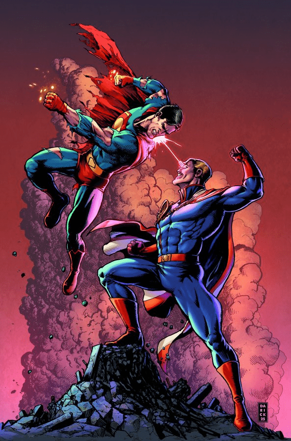 Está chegando o dia em que o Superman finalmente enfrentará o Capitão Pátria! A DC Comics liberou a primeira arte oficial do confronto.