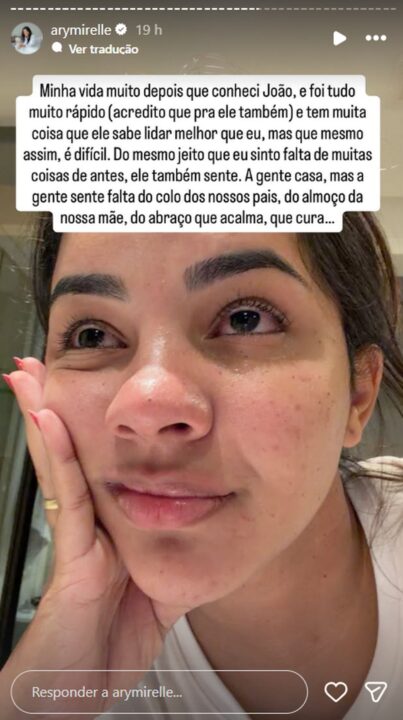 “Minha vida mudou muito depois que conheci João, e foi tudo muito rápido (acredito que para ele também), e tem muita coisa que ele sabe lidar melhor que eu, mas que mesmo assim é difícil”, confessou. “Do mesmo jeito que eu sinto falta de muitas coisas de antes, ele também sente. A gente casa, mas a gente sente falta do colo dos nossos pais, do almoço da nossa mãe, do abraço que acalma, que cura”, afirmou.