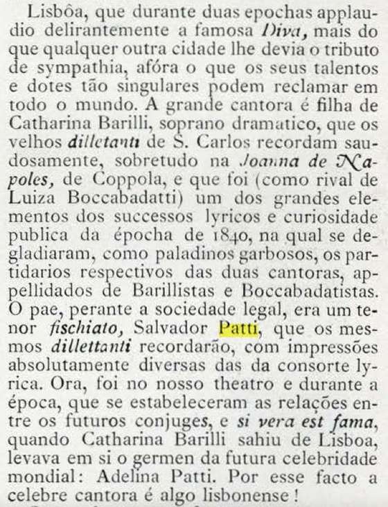 Em solo nacional, a publicação quinzenal de musica e theatros Arte Muscial, produzida nos Restauradores, caprichou na ousadia — e na tão popular teoria do parafuso que já impregnava a cultura das atualidades. Talvez Adelina Patti até tivesse, imagem bem, uma costela portuguesa.