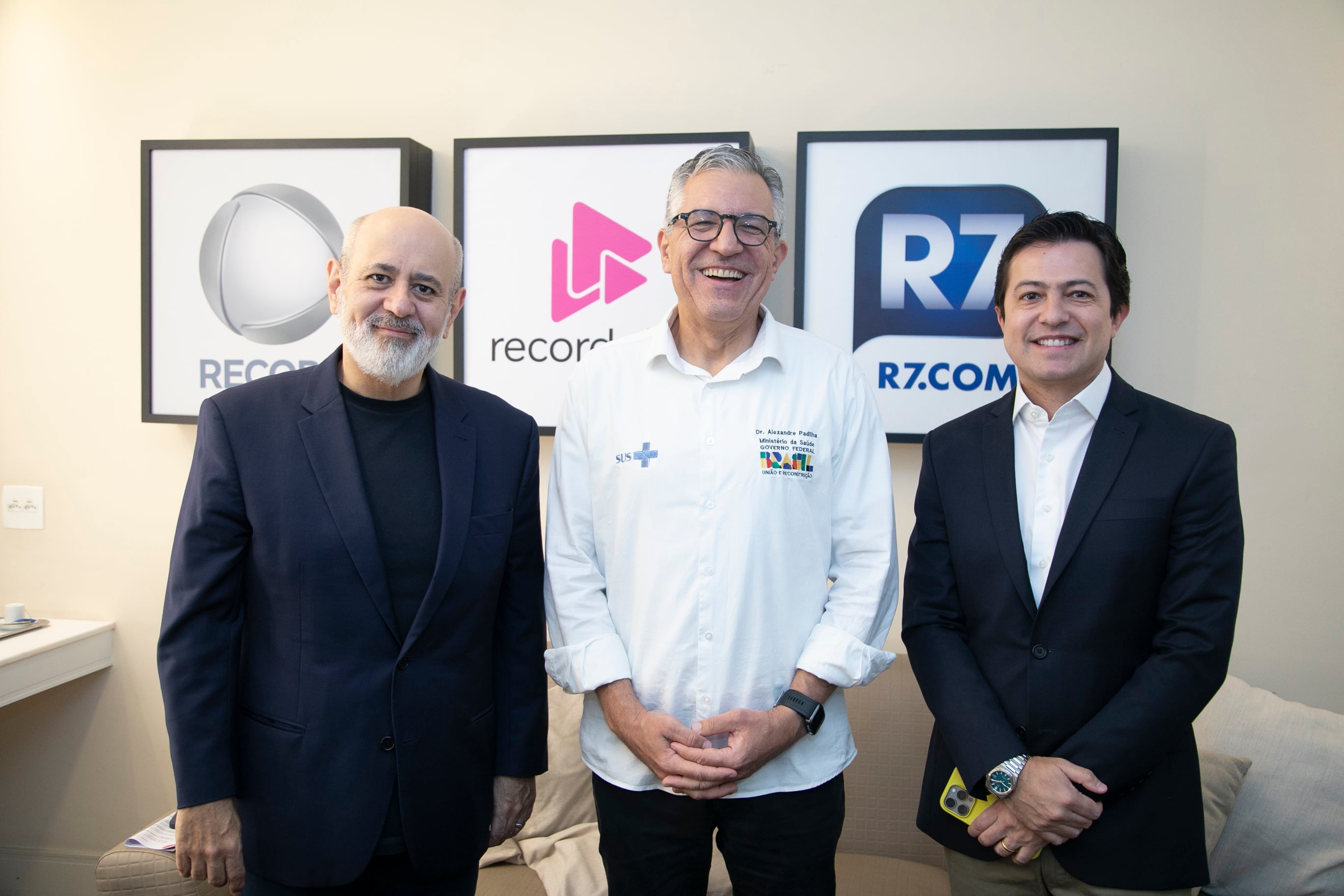 O ministro da Saúde, Alexandre Padilha, visitou a sede da RECORD em São Paulo nessa segunda-feira (22). Ele se encontrou com o presidente da empresa, Luiz Cláudio Costa, e Paulo Itabaiana, diretor nacional de comercialização.