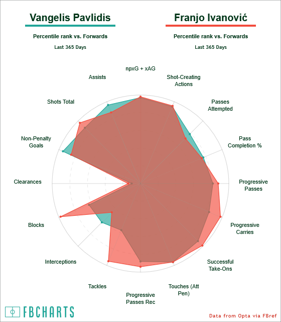 Eis a comparação entre Franjo Ivanovic e Vagelis Pavlidis: