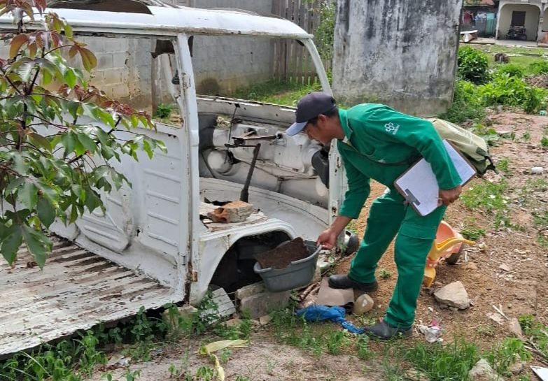 Agente comunitário encontra criadouro de mosquito da dengue no Amazonas (Reprodução/FVS)