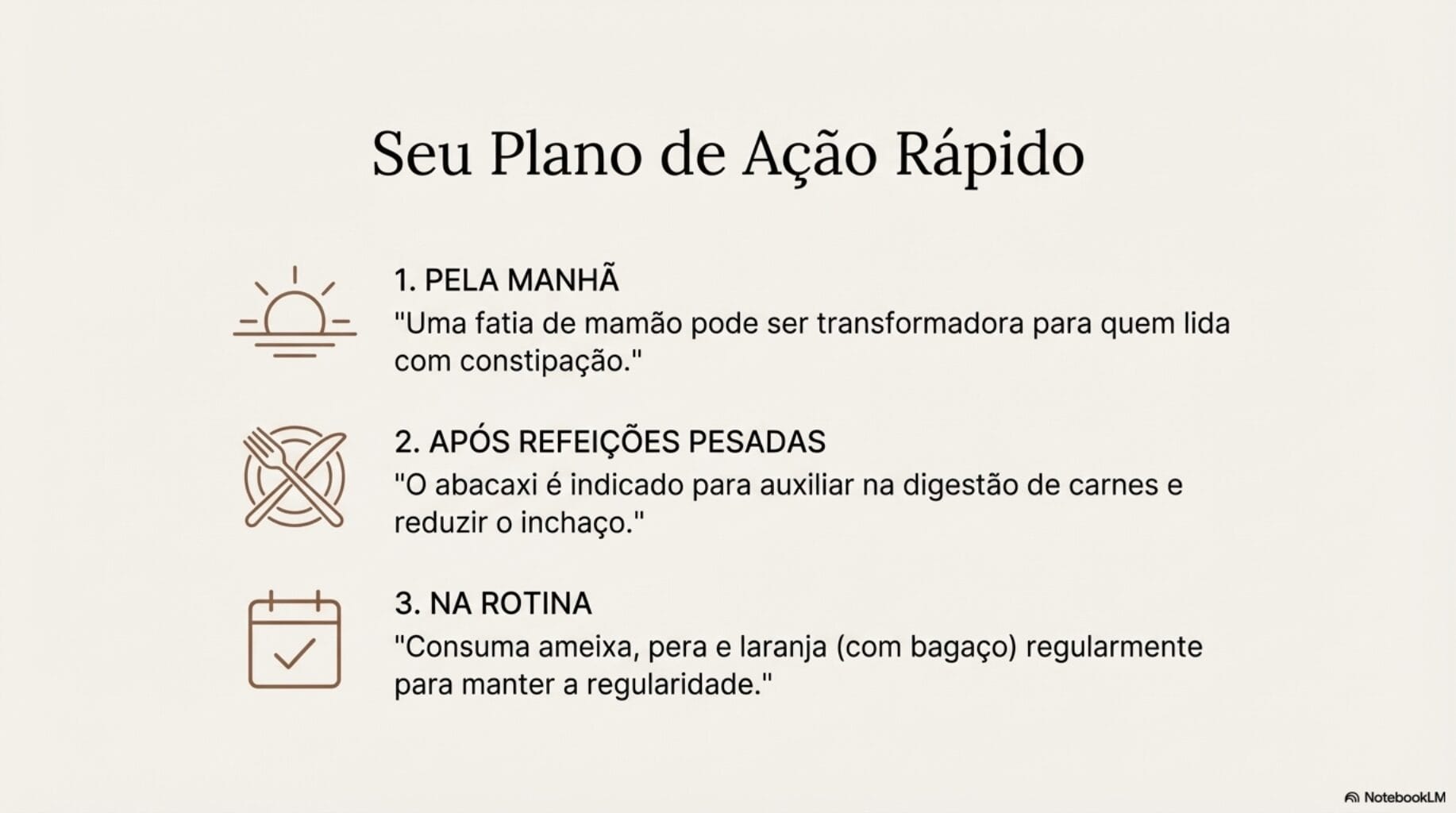 Guia para acabar com o inchaço com frutas (Foto: Reprodução, Google LM Notebook)