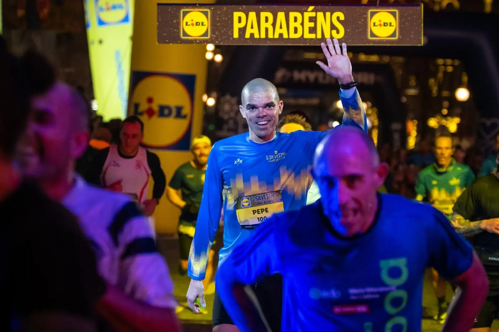 Pepe acenou aos presentes quando cortou a meta
