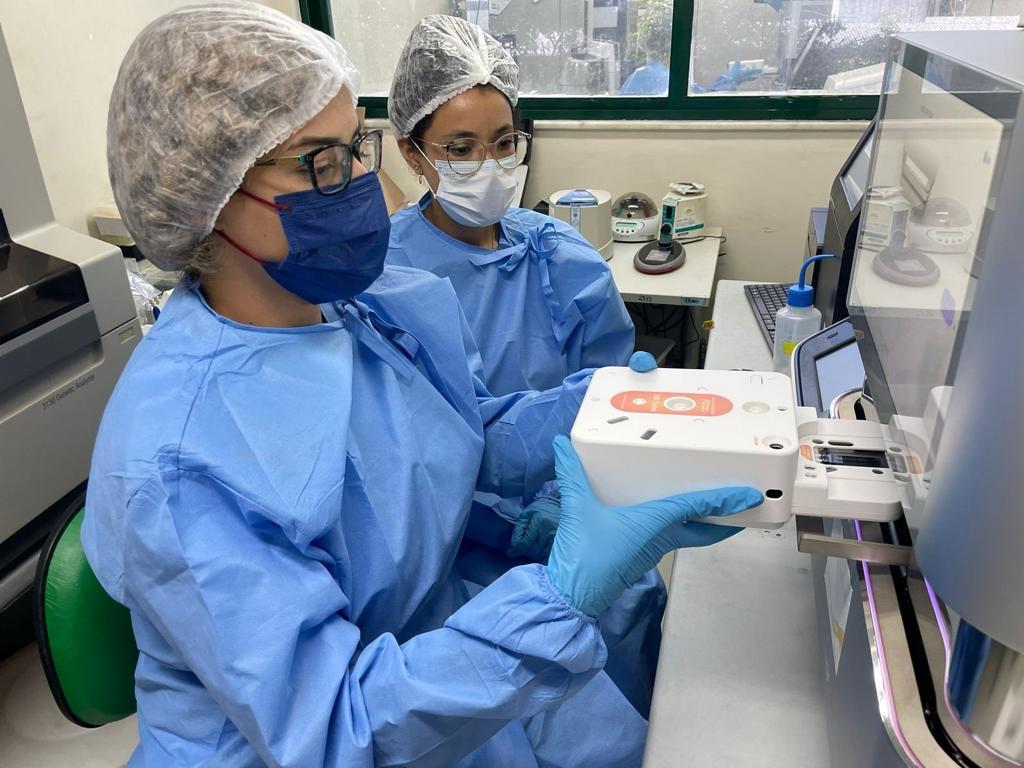 Pesquisadora Tatiana Almeida na Plataforma de Genômica do ILMD/Fiocruz Amazônia, sequenciamento genômico do Oropouche (Divulgação/Fiocruz)