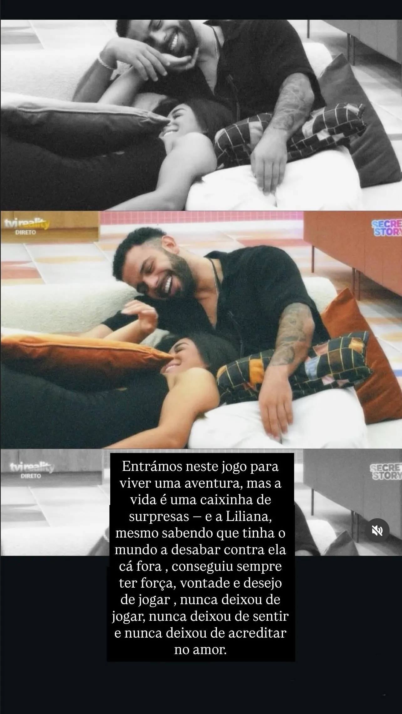“Entrámos neste jogo para viver uma aventura, mas a vida é uma caixinha de surpresas – e a Liliana, mesmo sabendo que tinha o mundo a desabar contra ela cá fora, conseguiu sempre ter força, vontade e desejo de jogar. Nunca deixou de jogar, nunca deixou de sentir e nunca deixou de acreditar no amor”, escreveu o antigo morador da casa mais vigiada do País.