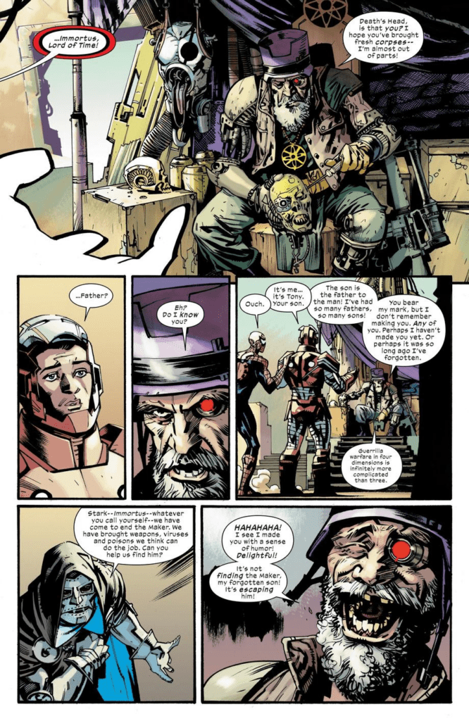 Nela, Howard Stark ainda está vivo, mas sob a identidade de Immortus, o Senhor do Tempo. Após sobreviver a dois milênios, ele sequer se lembra de seu filho, Tony Stark, que atende pelo nome de Rapaz de Ferro nesse universo.