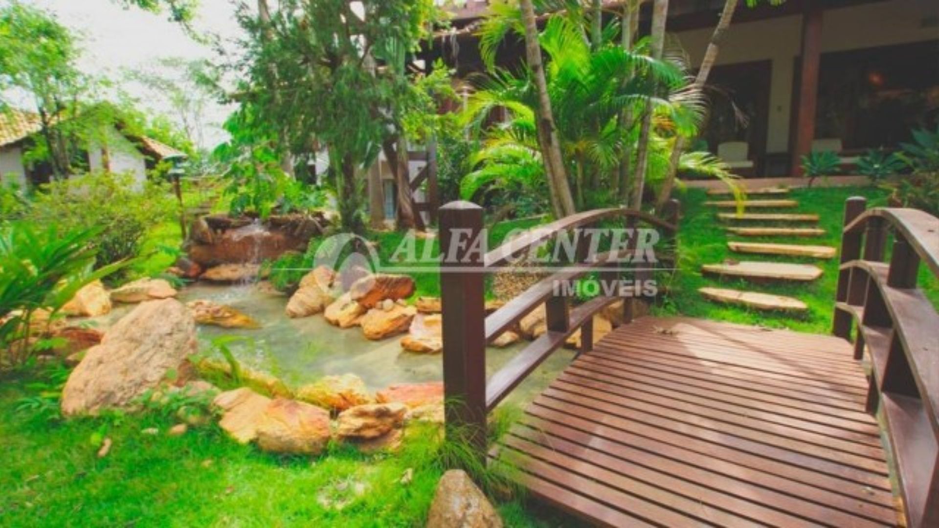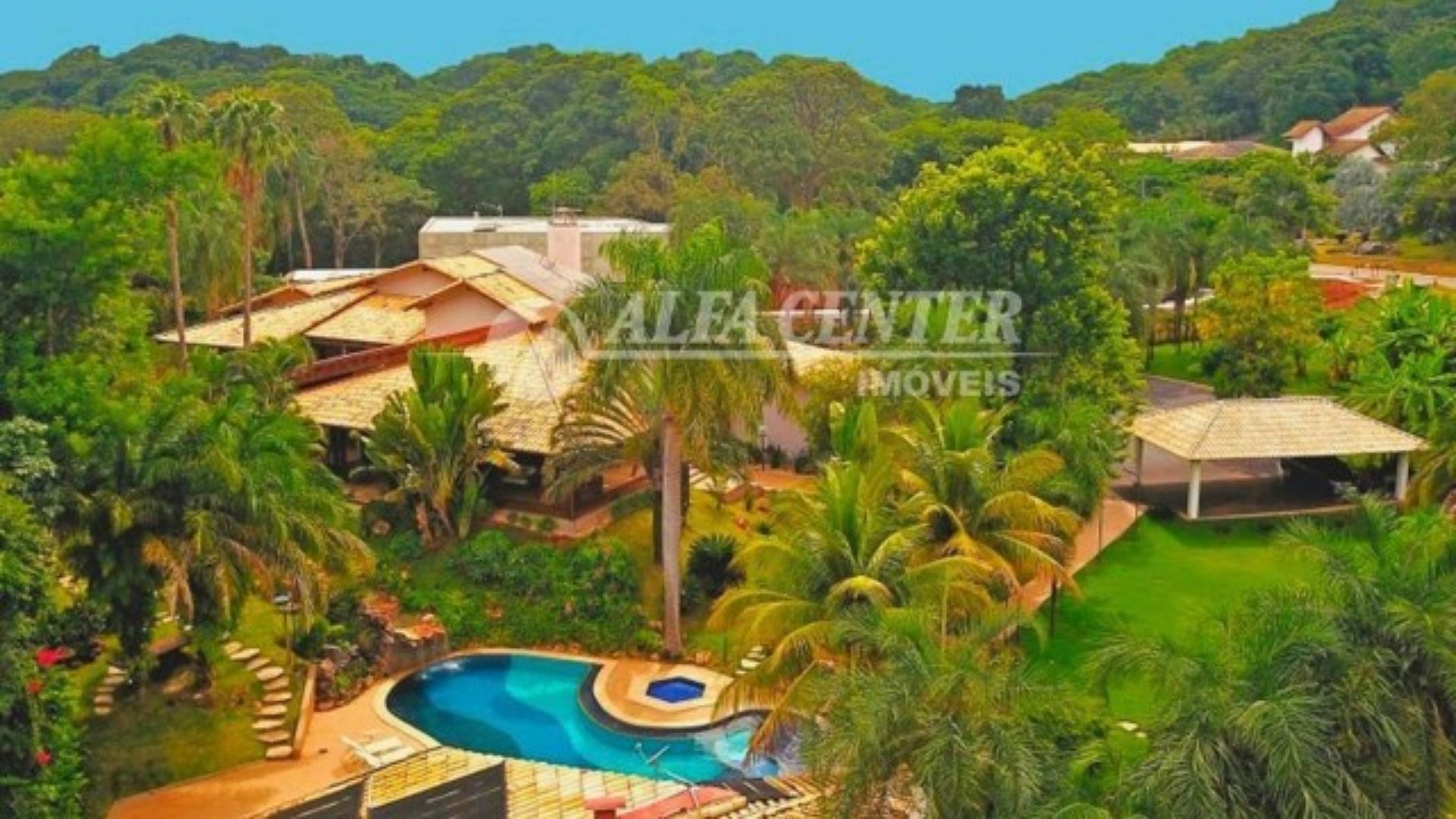 O projeto arquitetônico prioriza lazer privativo, contando com um lago interno com cachoeira, estufa, pomar, quadra poliesportiva e uma área de piscina com jacuzzi para dez pessoas. A casa dispõe ainda de sala de cinema e academia completa.