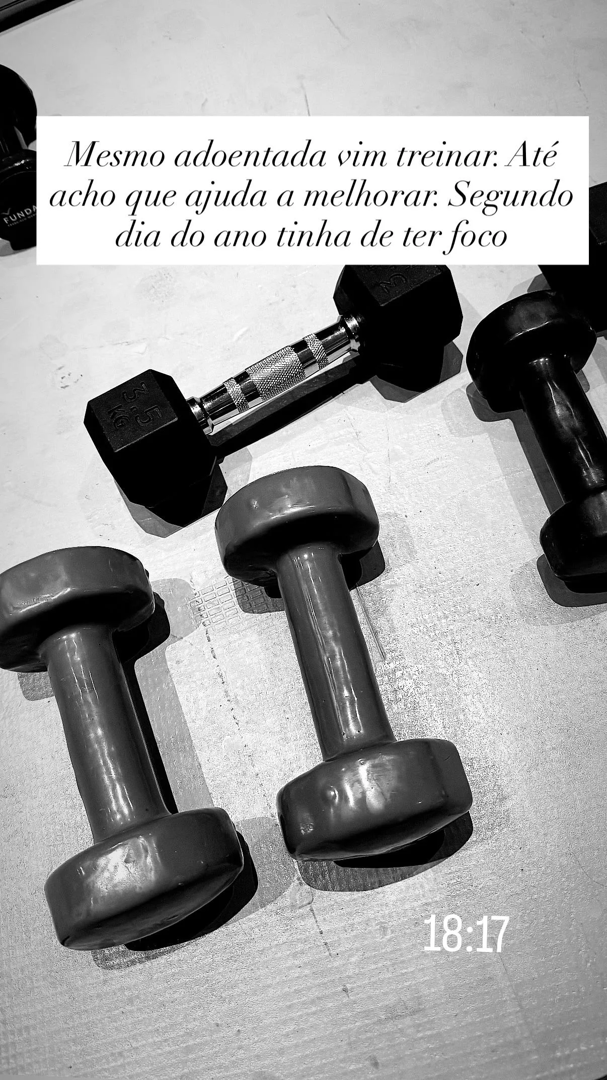 «Mesmo adoentada vim treinar. Até acho que ajuda a melhorar. Segundo dia do ano tinha de ter foco», escreveu a apresentadora do Secret Story naquela rede social.