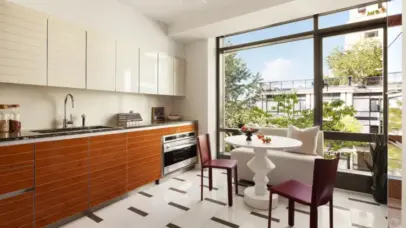 As janelas do imóvel, que ocupam toda a extensão do pé-direito, oferecem iluminação natural e vista para o Carl Schurz Park e para o East River, características valorizadas no mercado imobiliário da região. O acabamento inclui pisos em madeira nobre e sistemas modernos de climatização e automação.