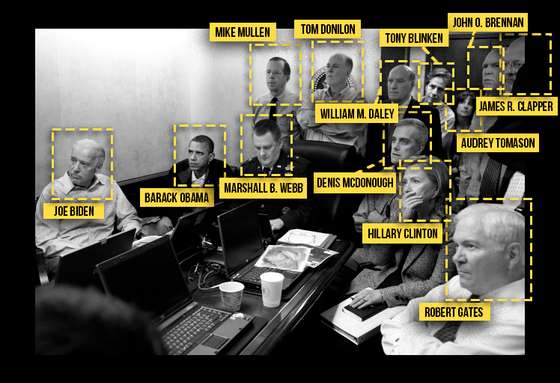 Quem em 2011 ocupava o lugar onde hoje está Tulsi Gabbard era James Clapper que, sim, esteve presente nessa sala de crise formada para capturar Osama Bin Laden. E aparece na foto de 2011, em que todos estão vestidos de forma muito mais informal – Joe Biden de camisa sem gravata e o próprio Obama com um casaco por cima de uma camisa branca.