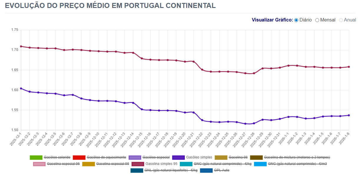 Segunda semana de 2026, segunda descida no preço dos combustíveis. Pelo menos no caso do gasóleo a partir da próxima segunda-feira, dado que a gasolina 95 vai manter o preço. De acordo com fonte do setor contactada pela ‘Executive Digest’, esta semana “a orientação será para uma descida de preços em até meio cêntimo por litro no gasóleo e uma estabilização do preço na gasolina 95”.