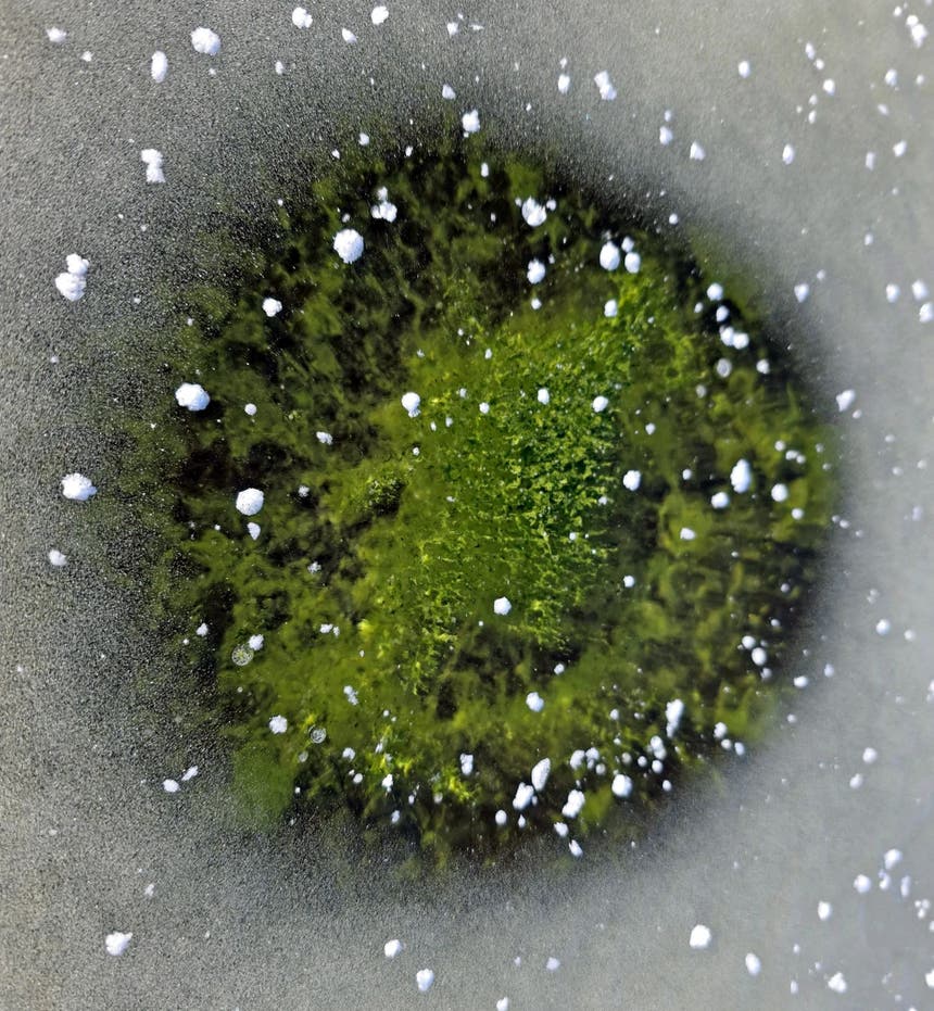 O gelo verde foi mais visível durante o período de aquecimento temporário em torno da véspera de Natal e, após o recongelamento, os chamados “olhos de cianobactérias” foram uma caraterística particularmente proeminente, ou seja, áreas de gelo claro acima de aglomerados de cianobactérias escuras que se formaram por absorção diferencial da radiação solar.