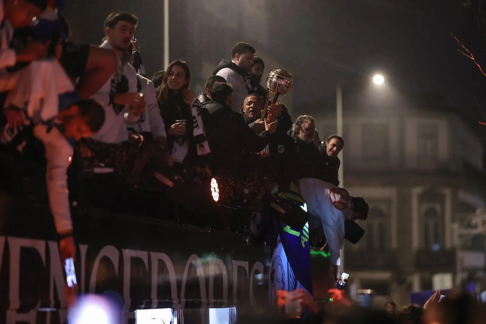 Após erguer o troféu no Estádio Municipal Dr. Magalhães Pessoa, em Leiria, ao derrotar o rival minhoto Sporting de Braga, por 2-1, na final da competição, a equipa chegou à Cidade Berço por volta das 3.30 horas, num autocarro descapotável apesar da chuva, e deparou-se com uma multidão assim que entrou na rua Paio Galvão, rumo ao Toural.