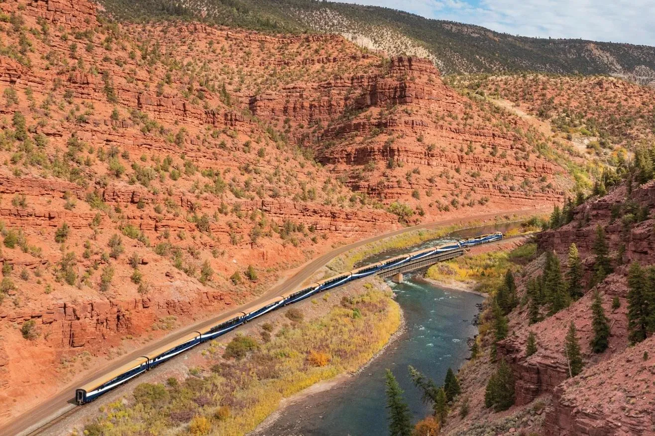 A partir de Denver, nas Montanhas Rochosas, os passageiros podem escolher um itinerário de dois ou três dias, via Glenwood Springs e Moab, porta de entrada para os parques nacionais do Utah.