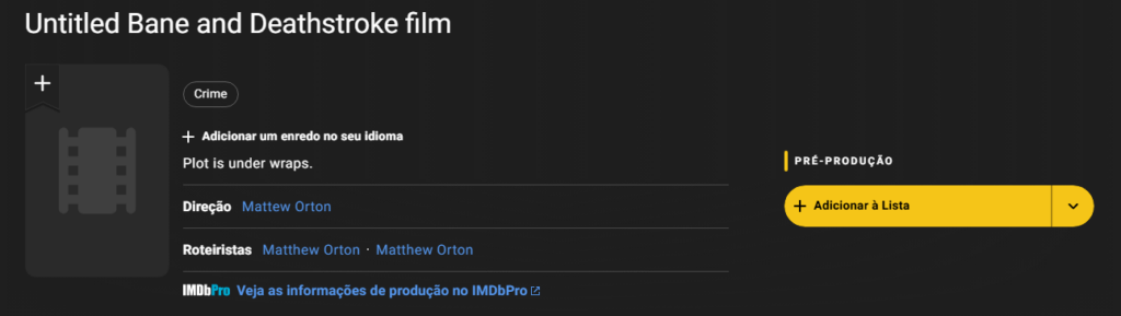 Entretanto, se a listagem estiver correta, o filme ainda sem título de Bane e Exterminador será o primeiro trabalho de Mattew Orton como diretor.