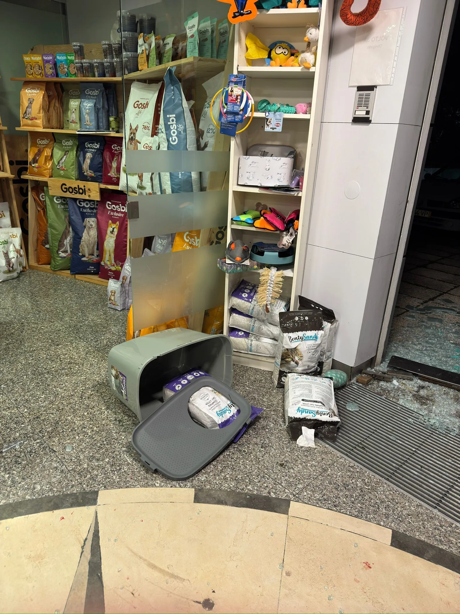 O estabelecimento ficou com danos consideráveis, incluindo a porta e a montra partidas, a câmara de vigilância destruída e vários equipamentos e peças de mobiliário inutilizados.