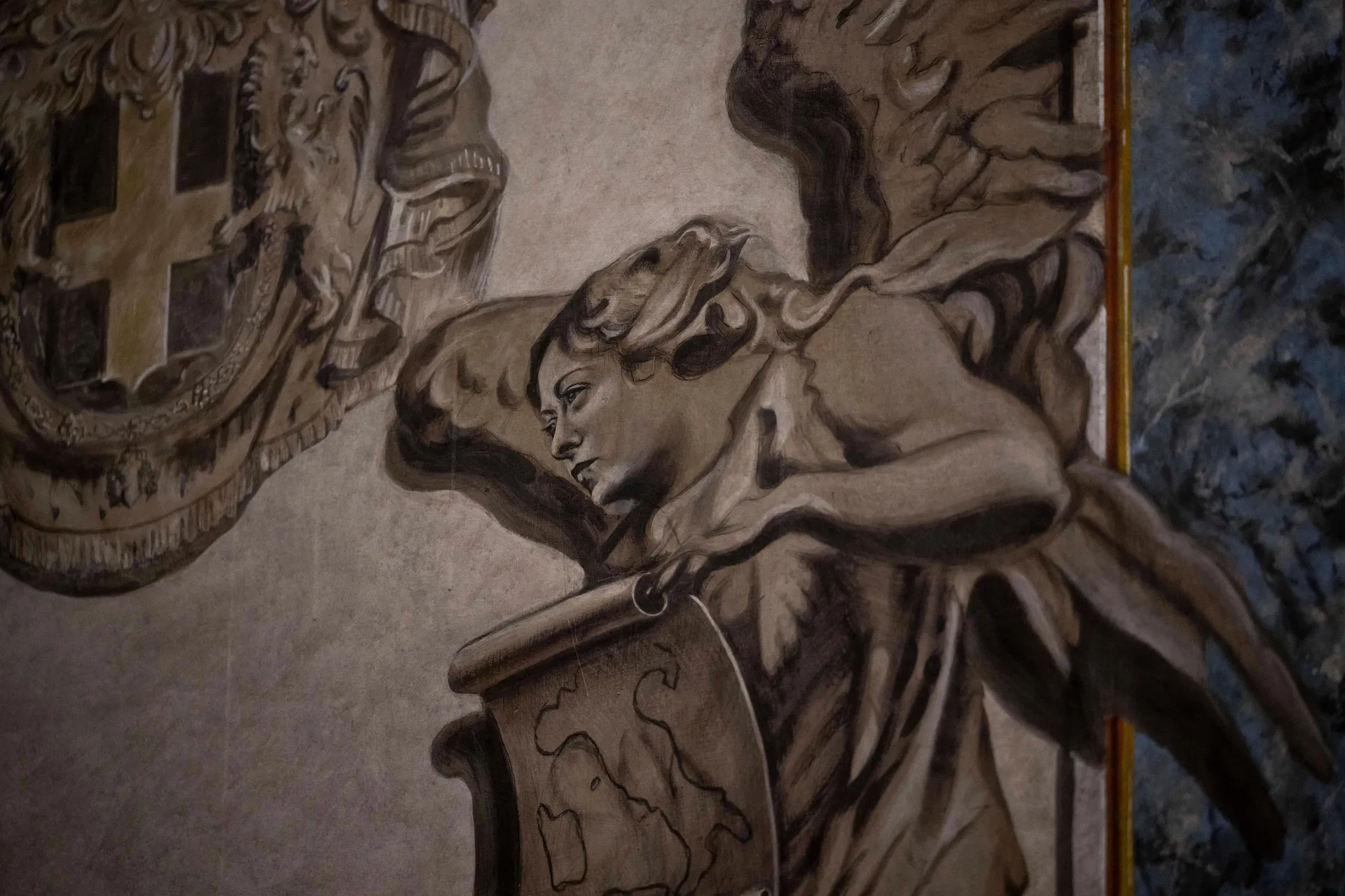 Fresco recém-restaurado na Basílica de San Lorenzo, em Lucina, Roma, retrata um anjo parecido com a primeira-ministra italiana Giorgia Meloni, em 3 de fevereiro de 2026, Itália (Antonio Masiello/Getty Images)
