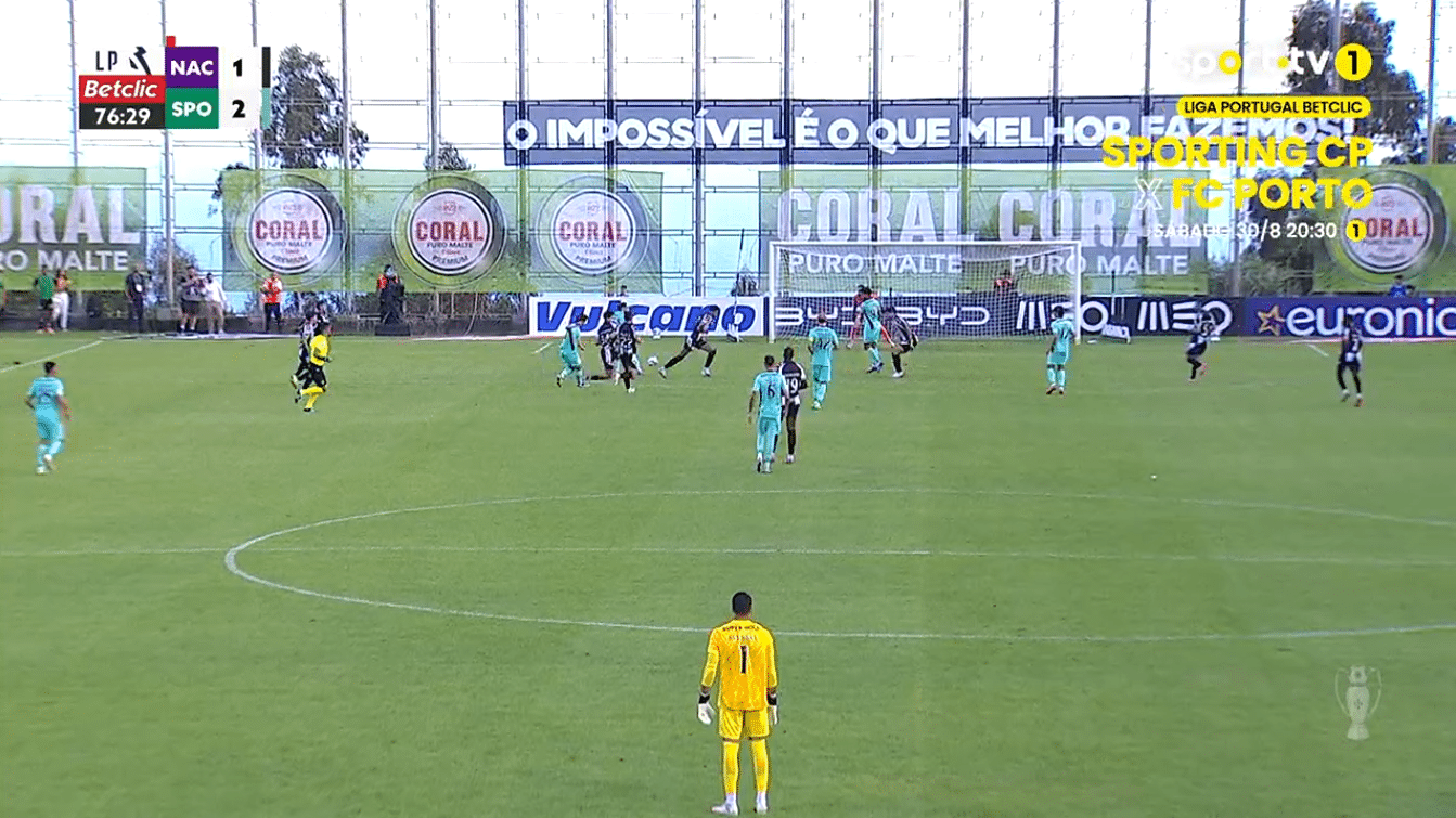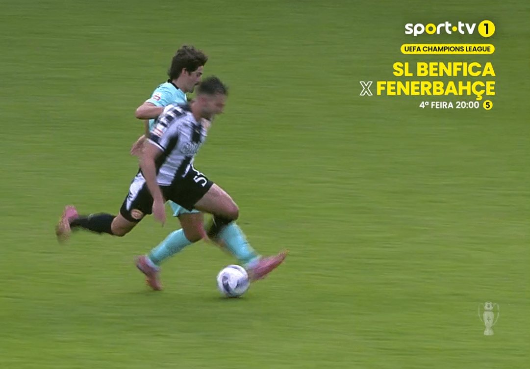 Pedro Gonçalves agrediu um adversário com o jogo parado. Resultado? Um simples amarelo.