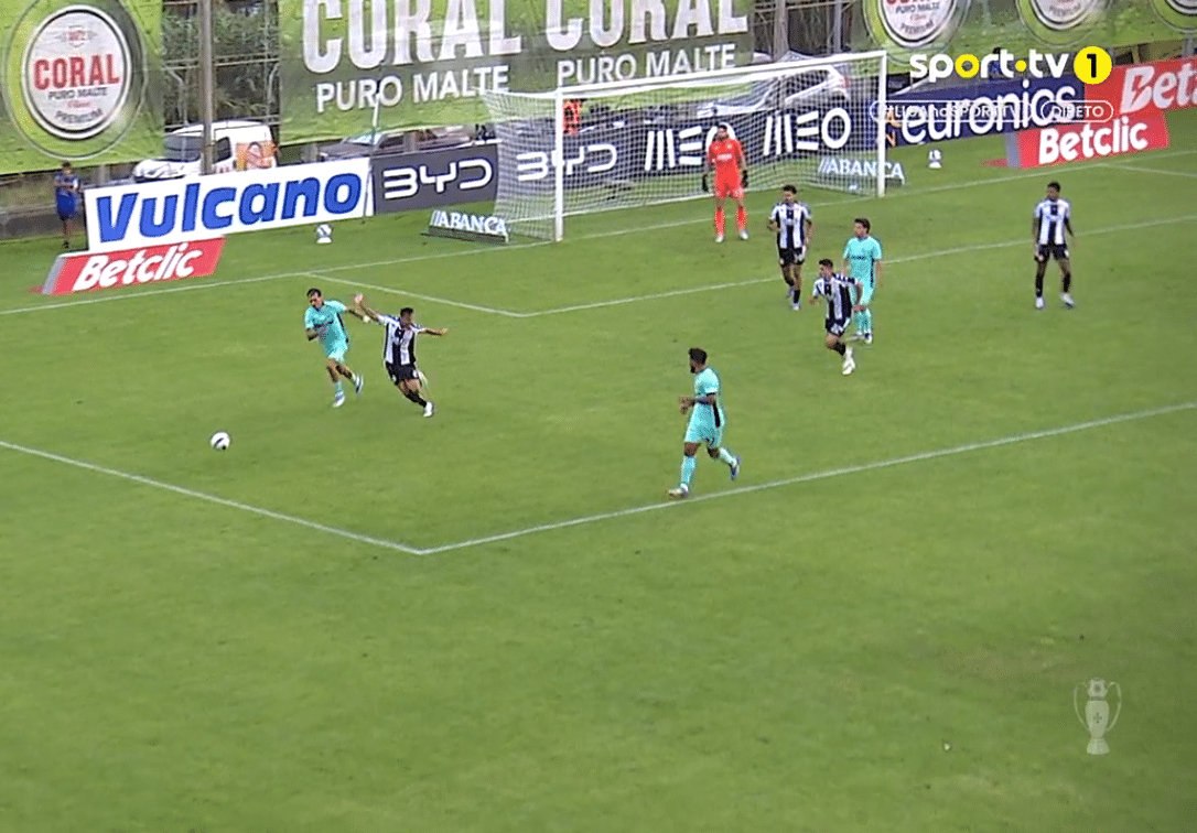 No golo anulado, a arbitragem de campo conseguiu validar um lance com 132 centímetros de fora de jogo. Só aí é que o VAR interveio.