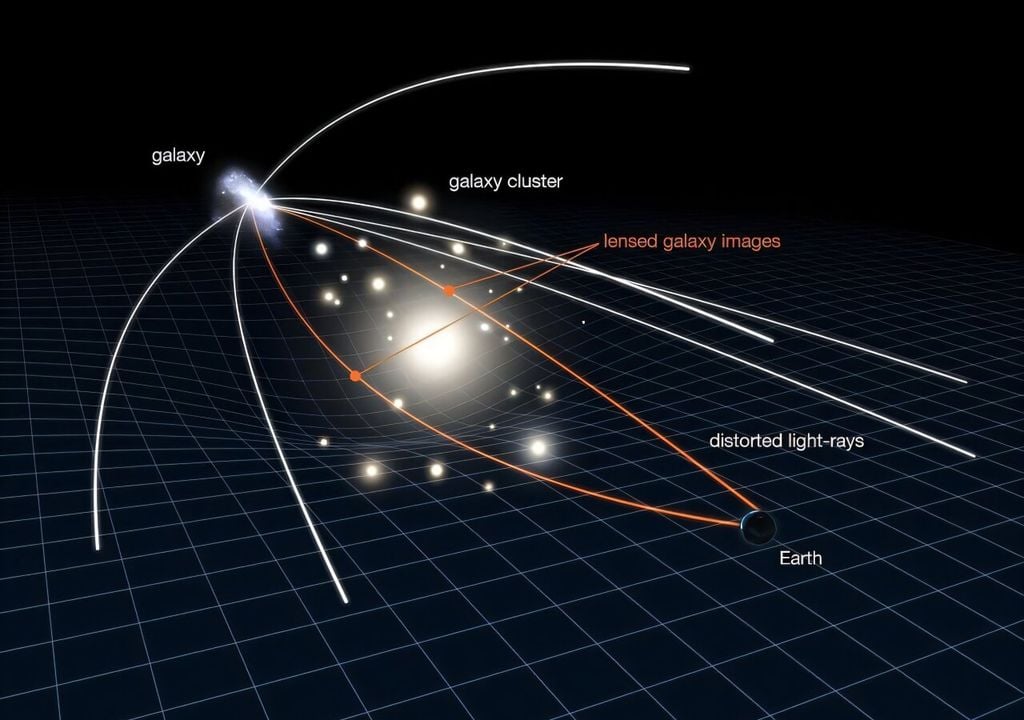 Quando a luz de galáxias distantes passa por estas regiões distorcidas por enormes aglomerados de galáxias, o seu caminho é curvado e amplificado, criando imagens ampliadas de objetos que de outra forma seriam invisíveis.