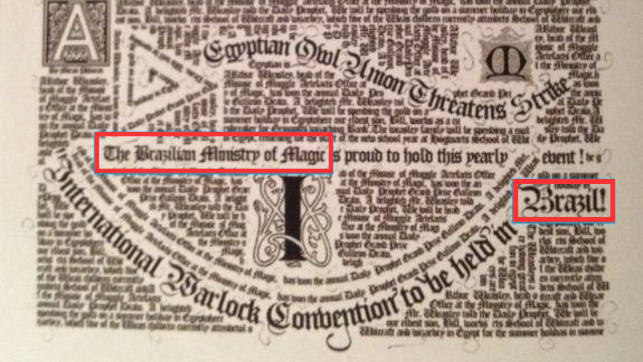 O Brasil também tem um Ministério da Magia e um Ministro da Magia, o que os fãs descobrem em ‘Harry Potter e o Prisioneiro de Azkaban’, quando um jornal menciona o ministro brasileiro, que não tem seu nome revelado, e a realização da Convenção Internacional de Bruxos em 1993.