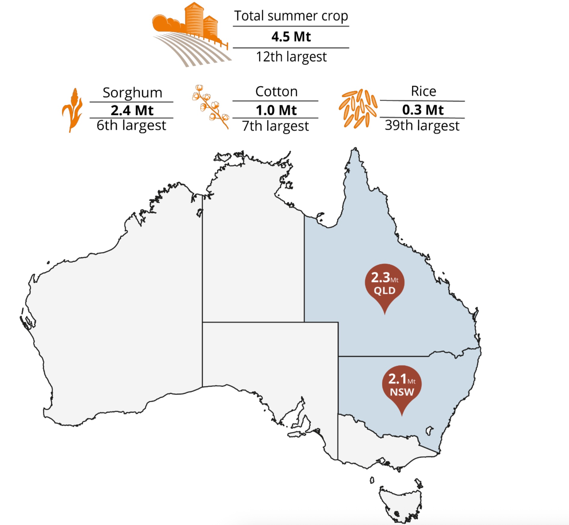 As regiões do norte de Nova Gales do Sul e Queensland apresentam bom desempenho. Nessas áreas, a umidade no solo manteve-se adequada. Já o sul de Nova Gales do Sul segue com chuvas irregulares. As lavouras precisam de mais precipitação na primavera para garantir o potencial de produtividade.