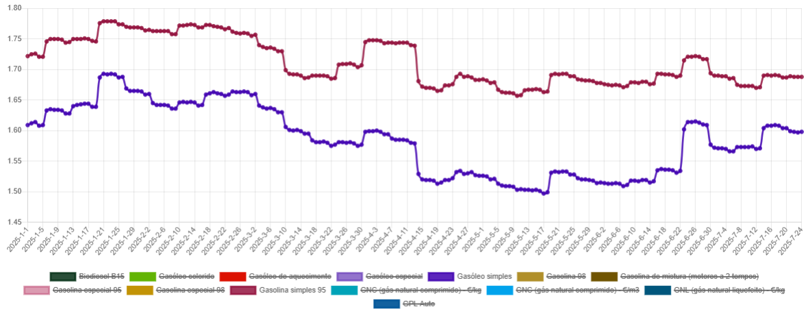 Se se analisar o percurso desde o início do ano, verifica-se que a gasolina 95 desceu ligeiramente – de 1,722 para 1,688 euros/litro; já o gasóleo desceu de 1,609 euros/litro para 1,598 euros/litro. Ou seja, encher um depósito de 60 litros de gasolina 95 custa menos 2,04 euros do que no início do ano: já se tiver um carro a gasóleo, irá gastar menos 66 cêntimos.