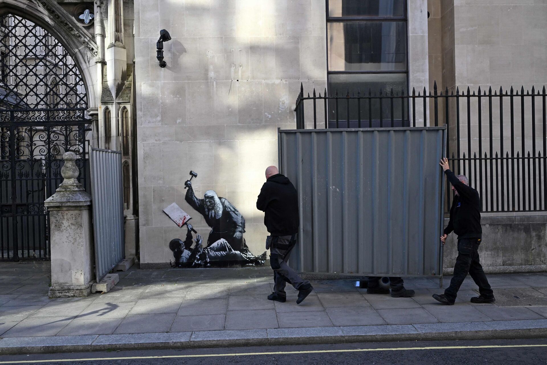 O mural, que se tornou viral nas redes sociais, apareceu numa das fachadas do Queen”s Building, parte do complexo do Tribunal Superior na capital britânica.