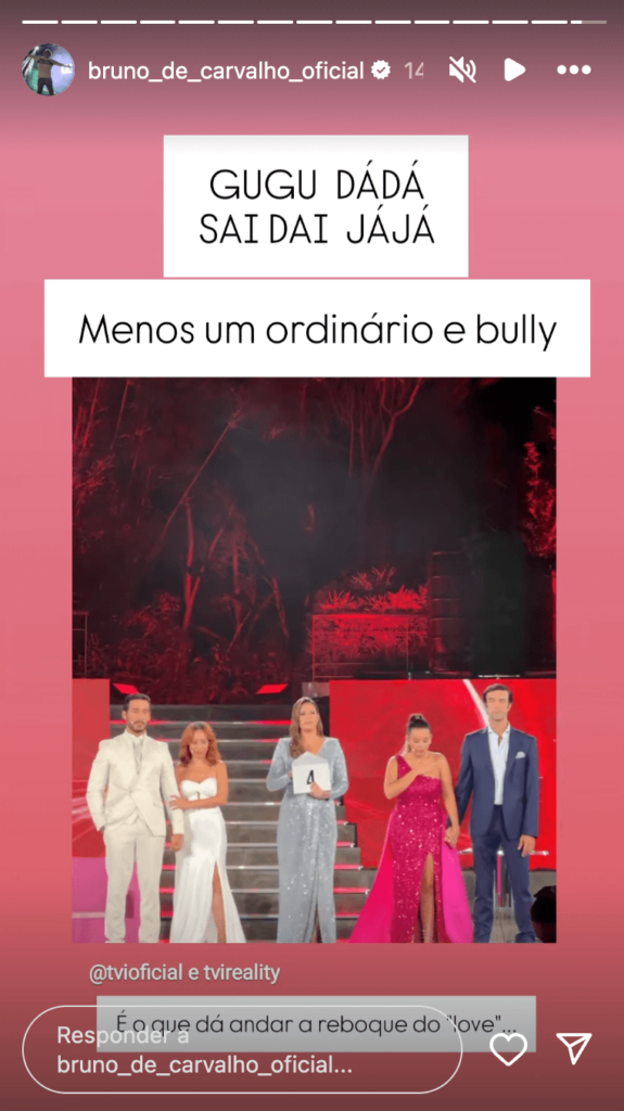 “GUGU DÁDÁ SAI DAI JÁJÁ. Menos um ordinário e bully”, começou por dizer o ex-presidente do Sporting, que acrescentou ainda: “É o que dá andar a reboque do Love”.