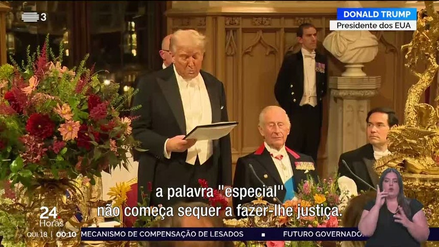 O banquete de Estado no Castelo de Windsor concluiu o primeiro dia da visita de 48h de Donald Trump ao Reino Unido. Quinta-feira, o presidente deverá reunir-se com o primeiro-ministro Keir Starmer, em Chequers, em reuniões mais políticas.