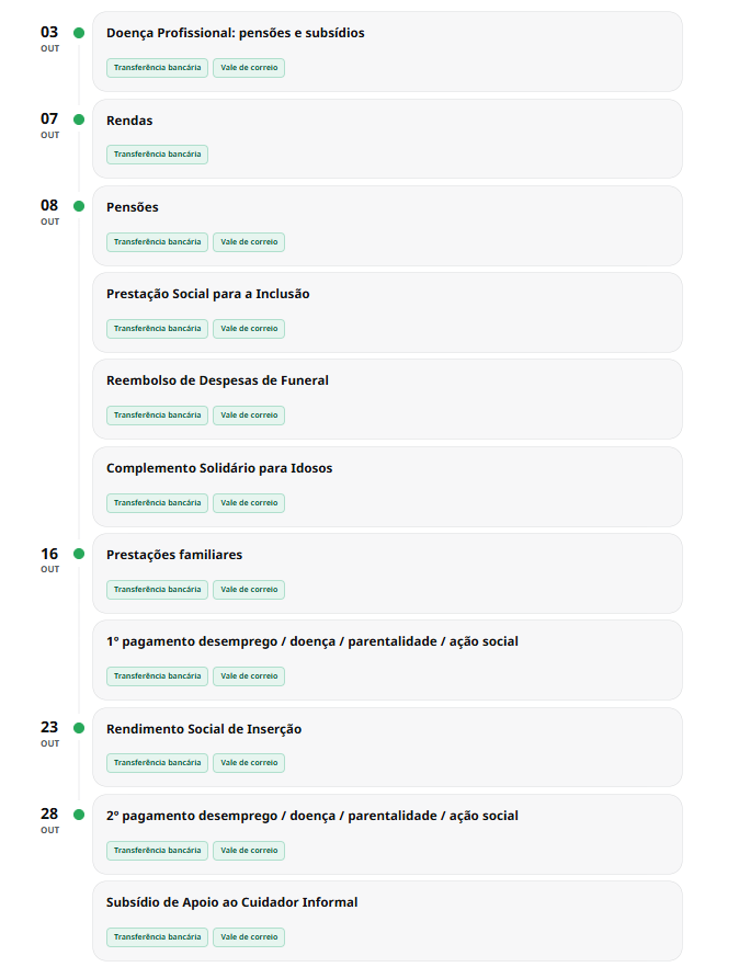 Datas de Pagamento das Prestações Sociais – Outubro de 2025