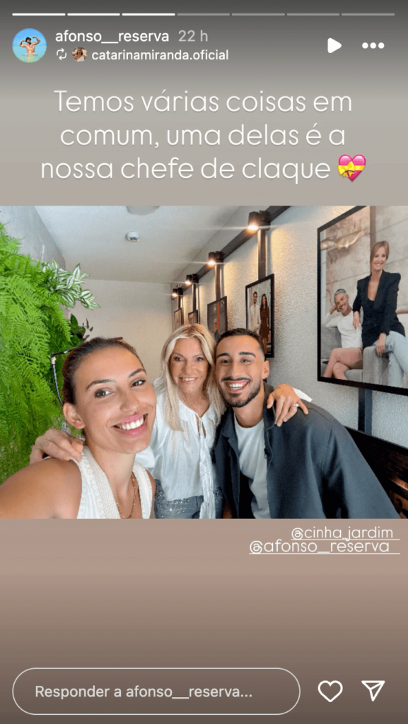 “Temos várias coisas em comum, uma delas é a nossa chefe de claque”, escreveu Catarina Miranda na legenda da publicação, onde se mostrou com Afonso e Cinha Jardim.