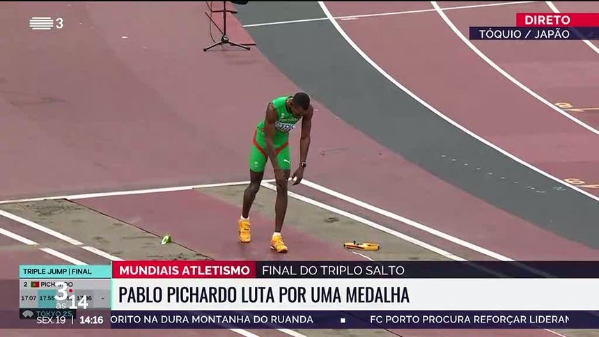 A 25.ª medalha lusa em Campeonatos do Mundo (segunda na capital japonesa, depois do triunfo de Isaac Nader nos 1.500 metros) foi assegurada com a melhor marca do ano, à frente do italiano Andrea Dallavalle, vice-campeão europeu em Munique2022, com 17,64 metros, e do cubano Lázaro Martínez, que foi despromovido da prata de Budapeste2023 para o bronze, com 17,49.