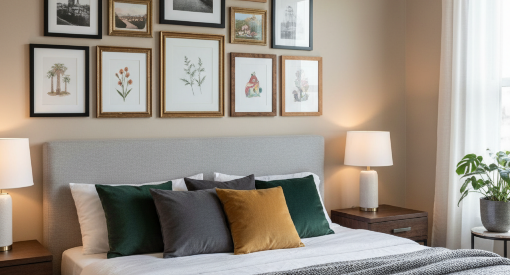 Uma galeria bem planejada atrai o olhar e cria uma narrativa visual personalizada. O espaço ganha calor e um senso de autenticidade.