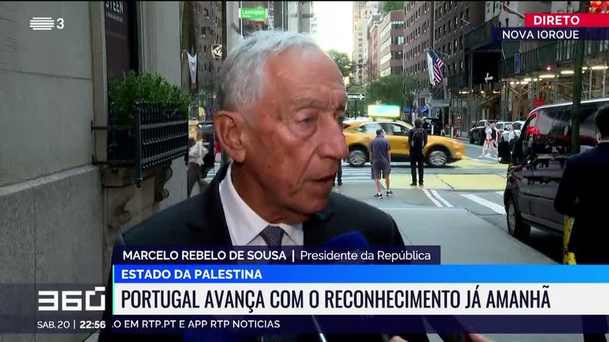 “Tem o pleno apoio do Presidente da República, que tem sido a posição portuguesa, que é defender a moderação para que essa fórmula [de dois Estados, de Israel e da Palestina] seja possível, e afastar-se dos radicalismos que se opunham a que a fórmula fosse possível”, declarou Marcelo Rebelo de Sousa aos jornalistas, em Nova Iorque, onde chegou este sábado participar na 80.ª sessão da Assembleia Geral da ONU.