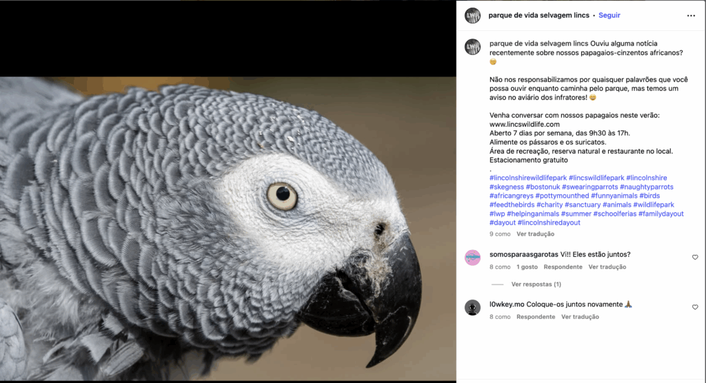 Cinco papagaios-cinzentos africanos do Lincolnshire Wildlife Park, no Reino Unido, foram separados após repetidamente ofenderem os visitantes e rirem juntos, como se compartilhassem uma piada. “Os papagaios, chamados Billy, Elsie, Eric, Jade e Tyson, foram inicialmente colocados em quarentena juntos e logo começaram a incentivar uns aos outros a usar linguagem imprópria, criando uma espécie de “clube de comédia” dentro do zoológico”, noticia a CBS News, sendo que o facebook do jardim zoológico já tenha precavido os visitantes, ora veja: